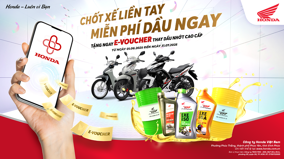 𝐄-𝐕𝐎𝐔𝐂𝐇𝐄𝐑 thay nhớt cao cấp chính hãng Honda , đảm bảo vận hành êm ái, bền bỉ, tiết kiệm nhiên liệu.