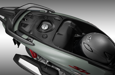 SH350i được trang bị cốp đựng đồ nằm dưới yên xe với diện tích lớn, có thể chứa được một mũ bảo hiểm cả đầu, cùng với bình xăng dung tích lớn, lên tới 9.3 lít.
