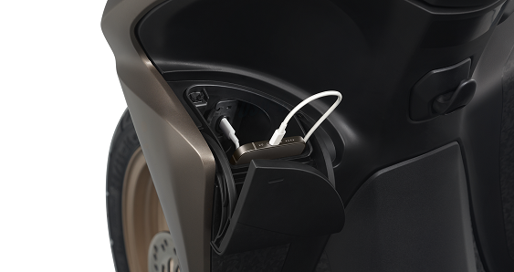 Hộc đựng đồ phía trước có nắp đậy, kích thước rộng rãi và có khả năng chứa nhiều vật dụng cá nhân và tích hợp cổng sạc USB loại C tiện dụng.