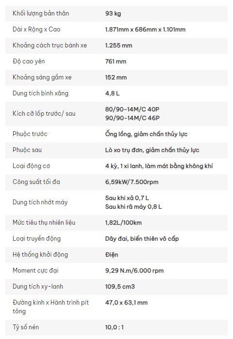 Có khả năng tự động ngắt động cơ khi dừng xe trên 3 giây và khởi động lại động cơ chỉ bằng thao tác vặn tay ga, giúp giảm tiếng ồn, tiết kiệm nhiên liệu và bảo vệ môi trường.